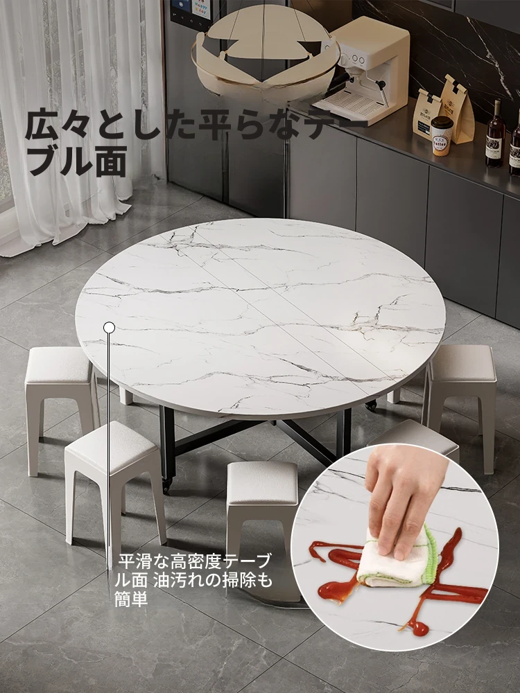 折りたたみ式ダイニングテーブル 大型円形デザイン コンパクトな空間に最適!2025年新モデル 回転式プレート付きで家族みんなで楽しく食事ができる!