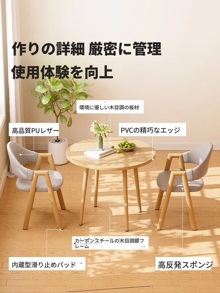 おしゃれな小型ラウンドテーブル&チェアセット|リビングにぴったりのインスタ映えアイテム|休憩エリアやカフェにも最適|心地よい空間を演出するドーパミンテーブルセット!