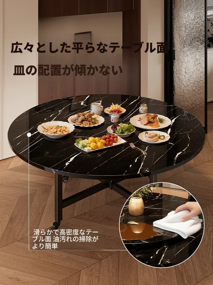 折りたたみ式ダイニングテーブル 家庭用ラウンドテーブル 高級感あふれる大理石模様の食卓 2025年新作 回転式プレート付き 大人数にも対応!
