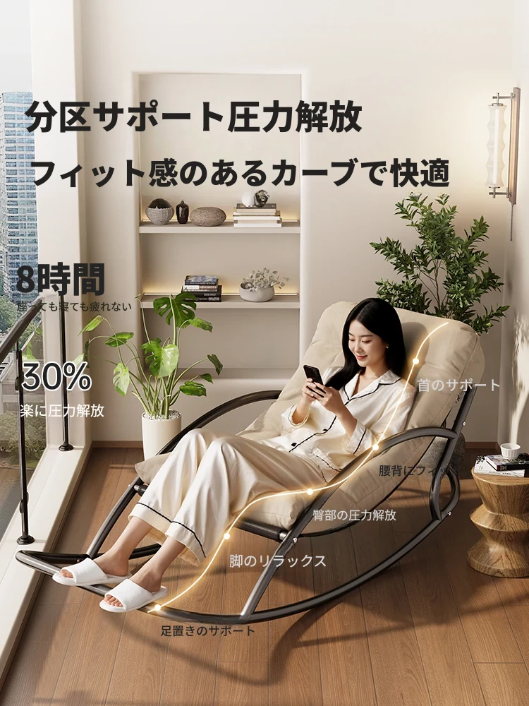 2025年新作!リラックスチェア - バルコニーや家庭用に最適、日向ぼっこやお昼寝にぴったり!大人・高齢者も安心して使える揺らぎチェアで、心地よいひとときをお楽しみください。