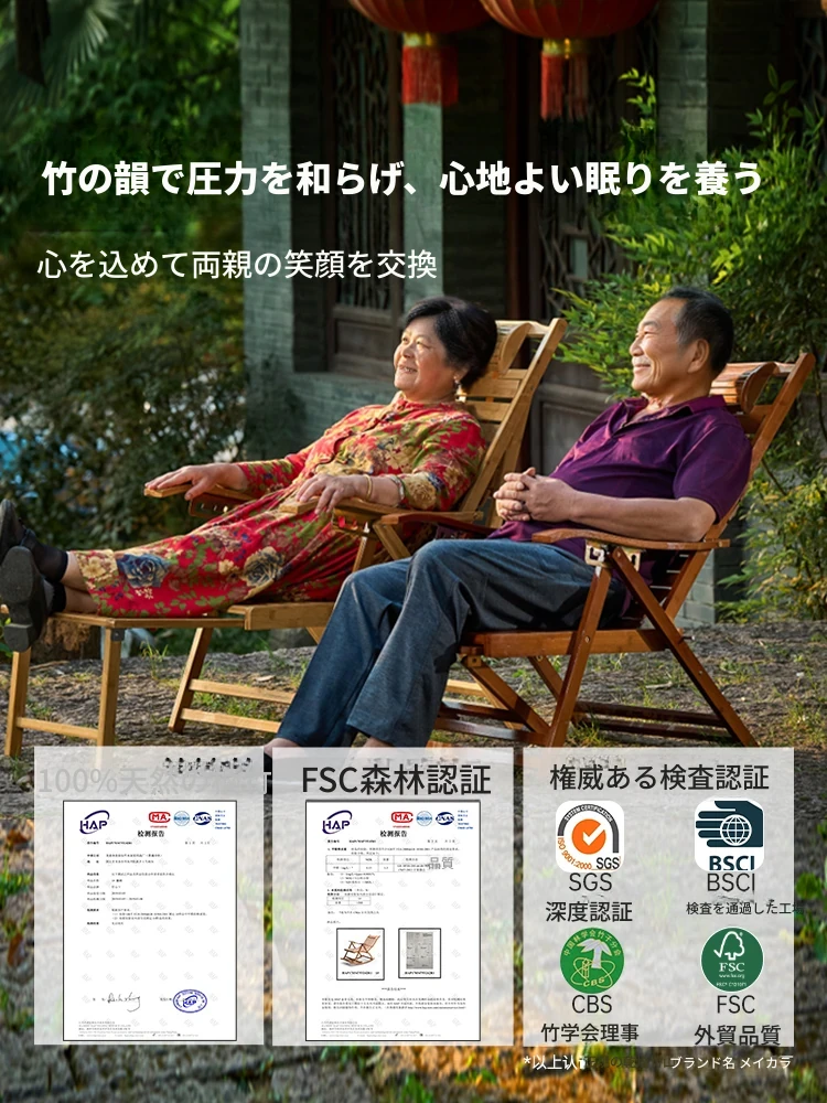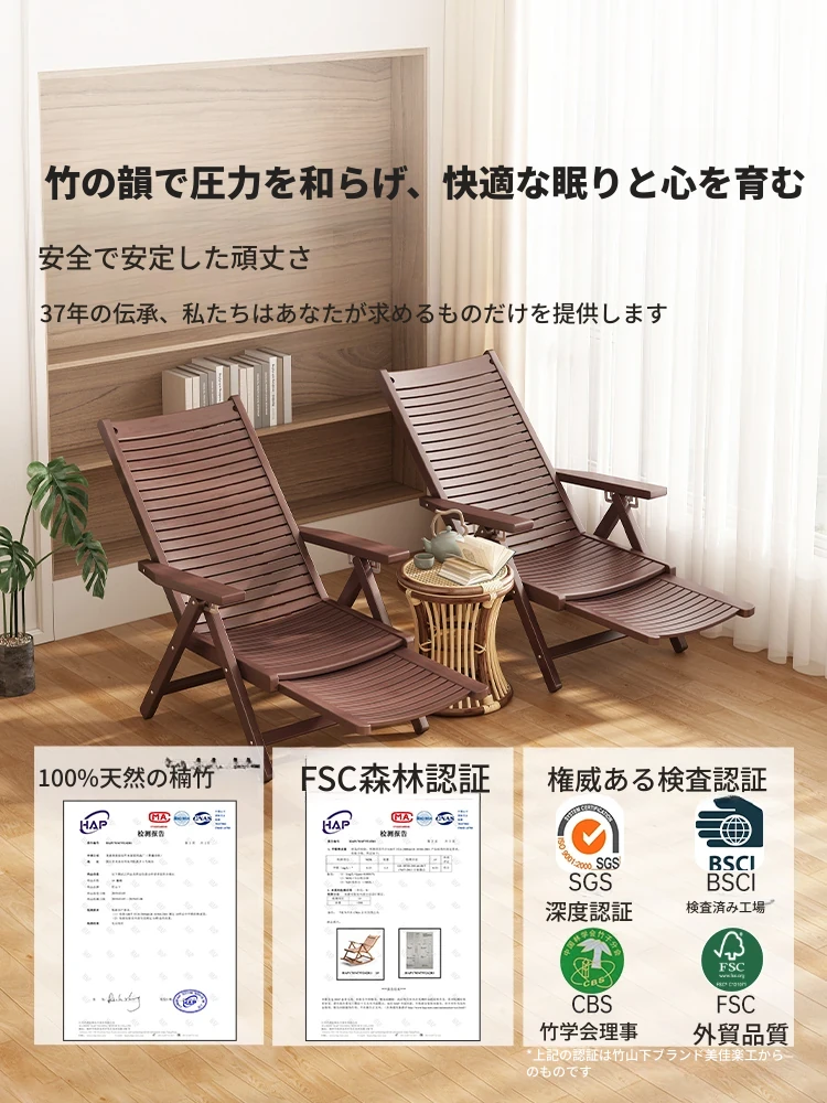 折りたたみ式リクライニングチェア - お昼寝やリラックスに最適!バルコニーや家庭用にぴったり!高齢者にも優しい快適なデザインの竹製椅子。長時間座っても疲れにくい、あなたのくつろぎタイムをサポートします。