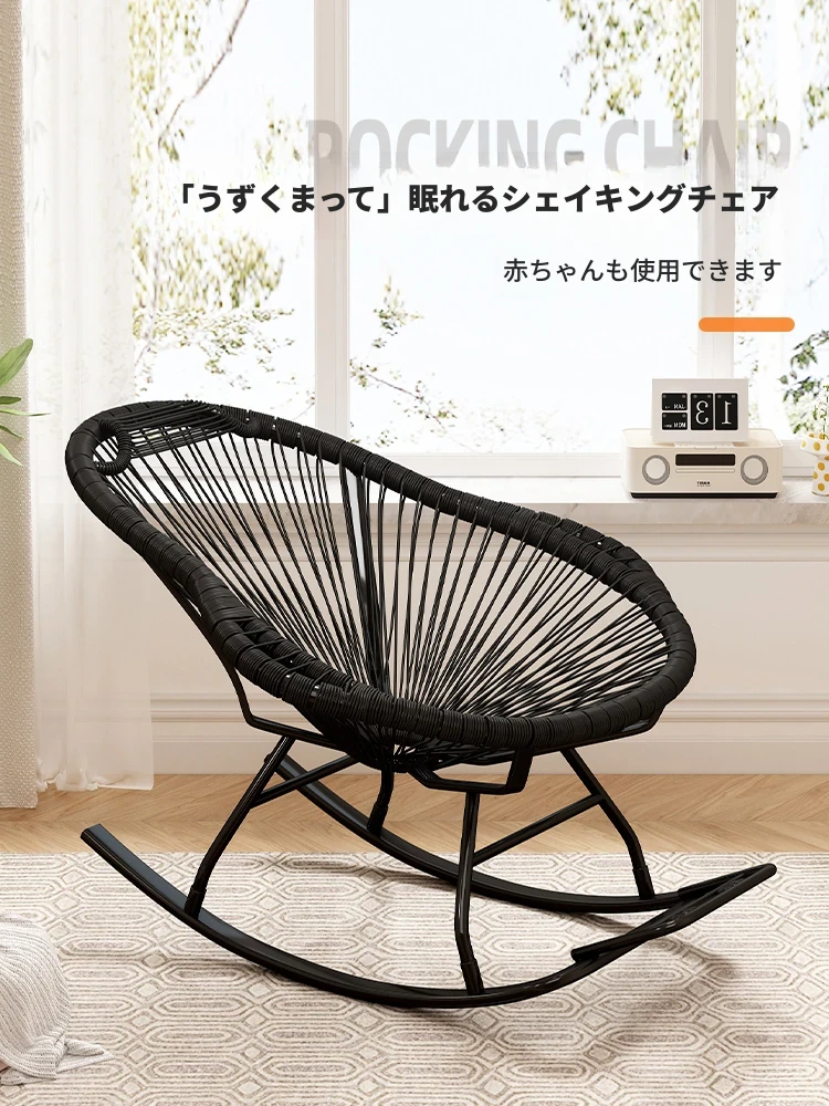 2025年新款!リラックスできるバルコニー用のチェア、昼寝にも最適な揺れる藤製椅子。ご家庭で使える高齢者向けの快適な怠け者用椅子。心地よい午後のひとときをお楽しみください!
