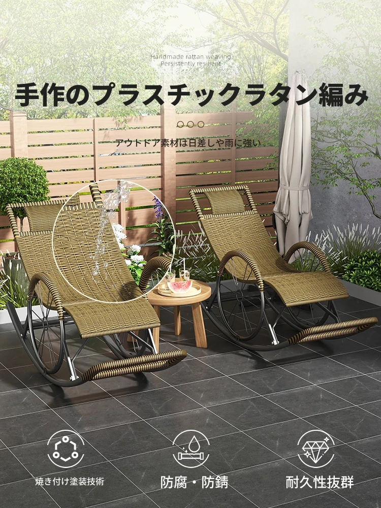 2025年新作!リラックスできるバルコニー用チェア - 大人や高齢者に最適な日向ぼっこやお昼寝にぴったりの籐製ロッキングチェア。快適なひとときをお楽しみください!