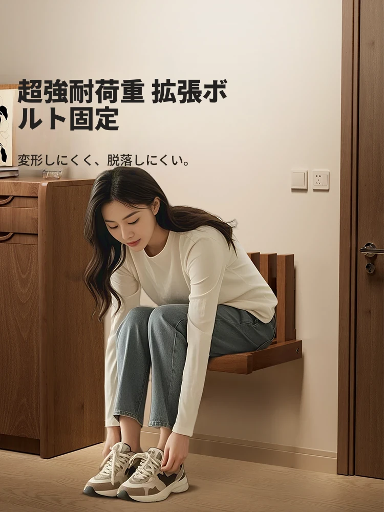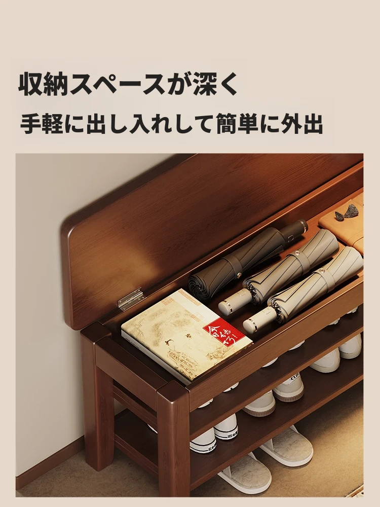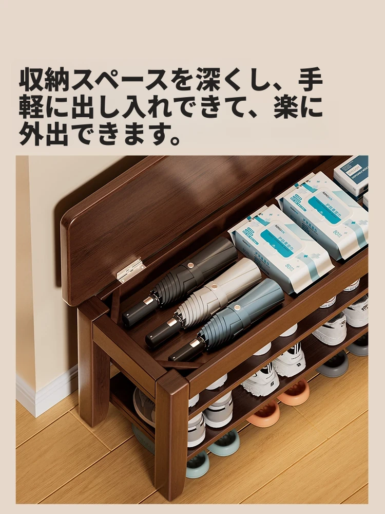 玄関用スリムシューズベンチ - おしゃれな無垢材製、収納機能付き、軽やかなデザインで靴を履くのが楽々!狭いスペースにもぴったりな一体型シューズキャビネット。快適な入室体験をお届けします。