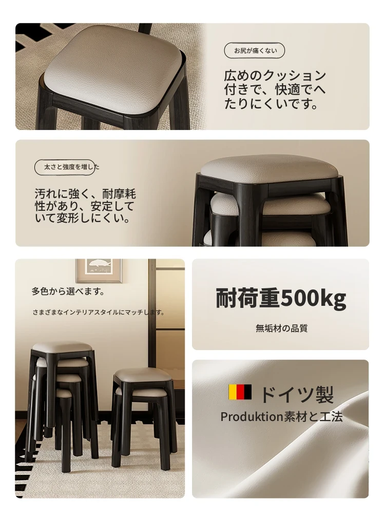 無垢材のクッション付きスツール|家庭用・スタッキング可能|リビングやダイニングに最適|特厚のソフトスクエア&ラウンドスツール|モダンでシンプルなデザインで、心地よいくつろぎ空間を演出!