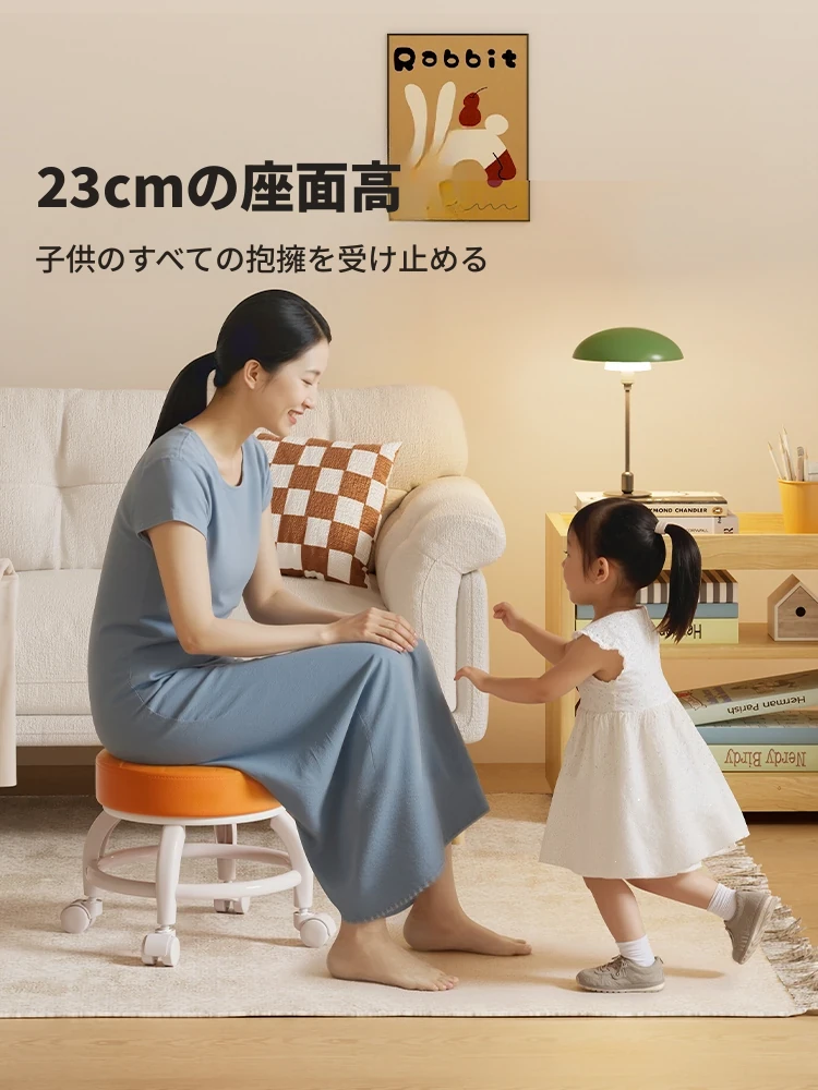 家庭用の頑丈なキャスター付き小型スツール - おしゃれな円形デザインで、移動もラクラク!人気のスライド式ロータイプスツールで、どんな部屋にもぴったり。快適な座り心地で、インテリアにも最適です!