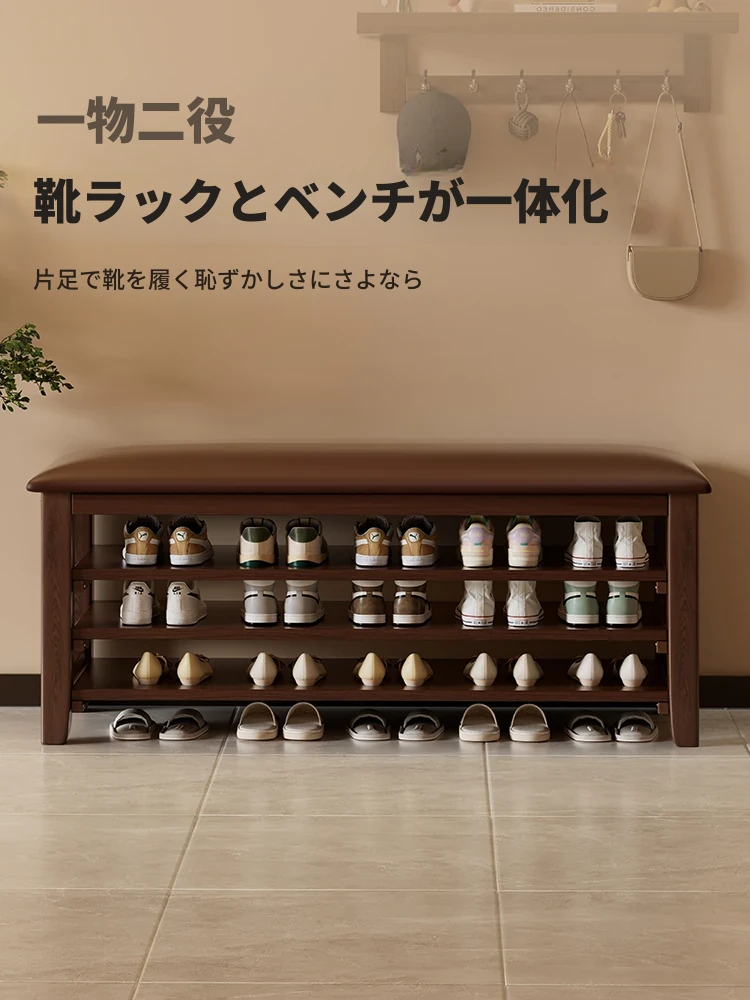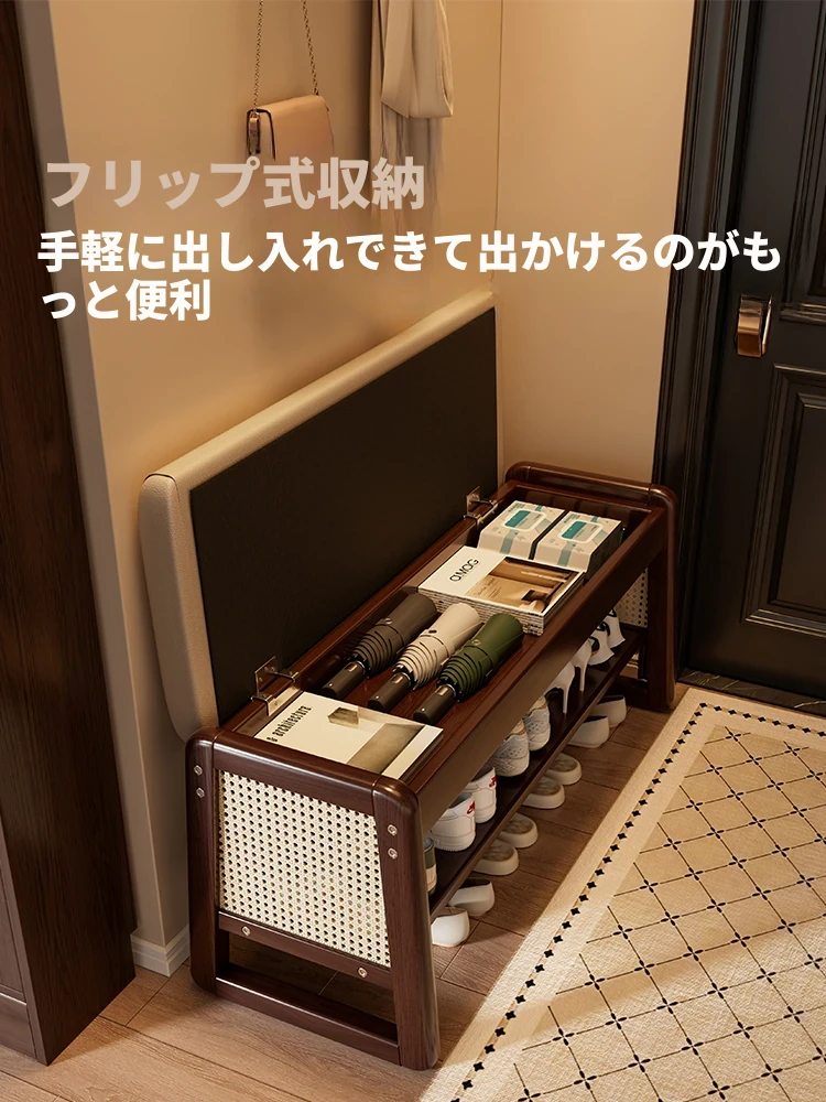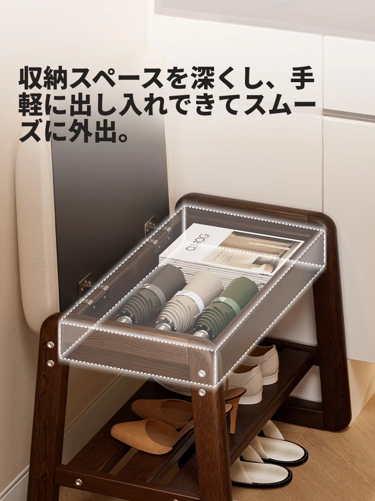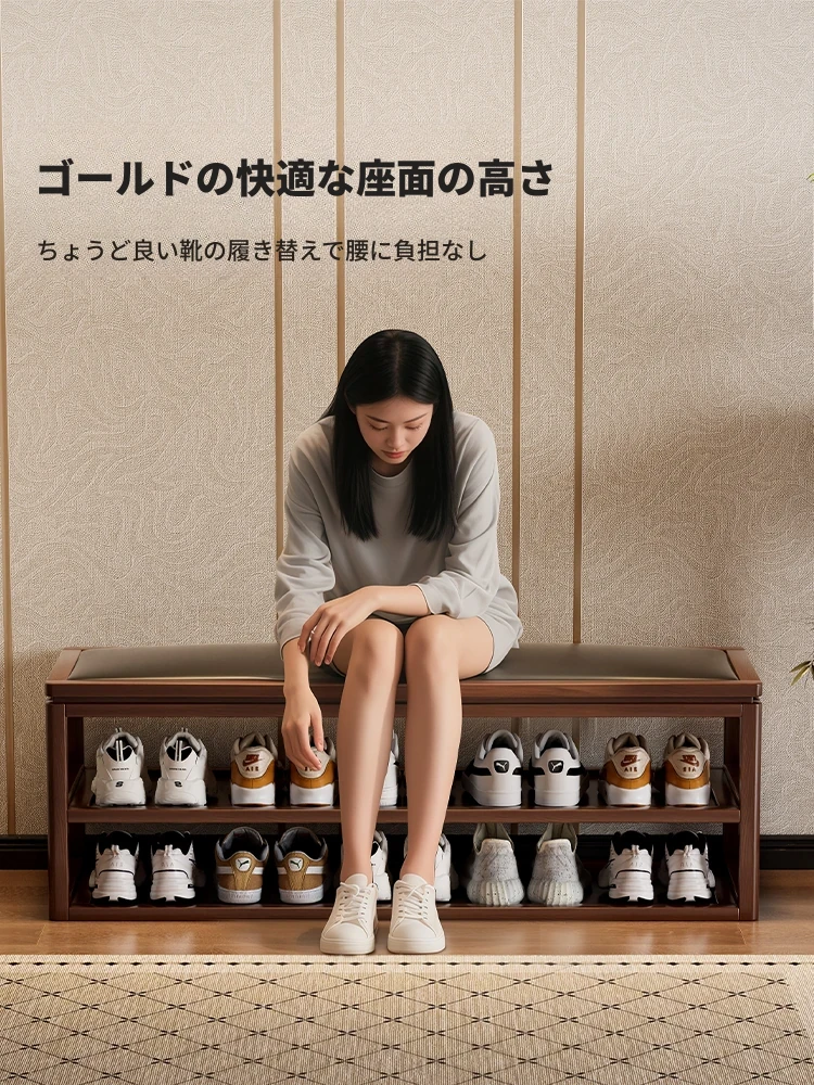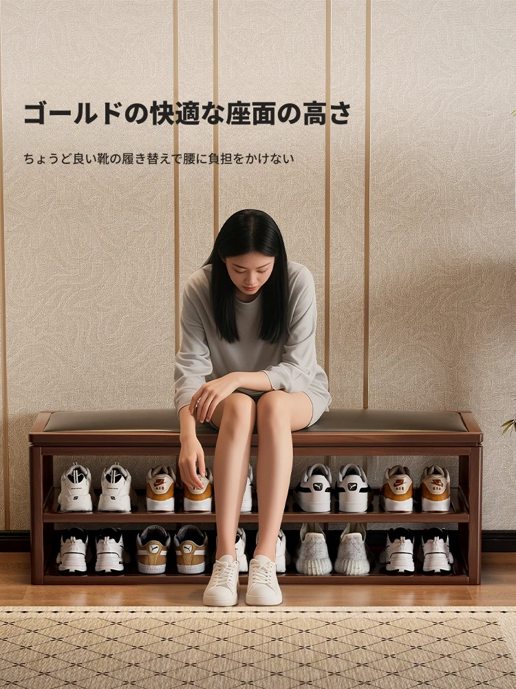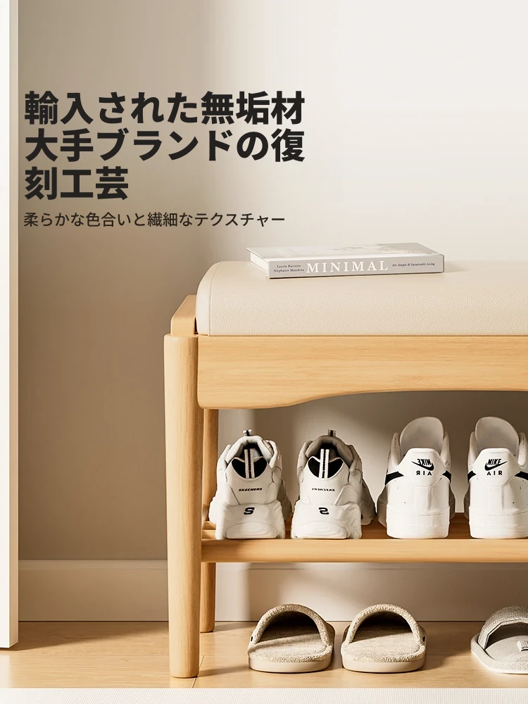 狭い玄関にぴったり!高級感あふれる極薄実木製ソフトパッケージシューズベンチ - スタイリッシュで機能的な玄関用スツールで、靴を履くのが楽に!