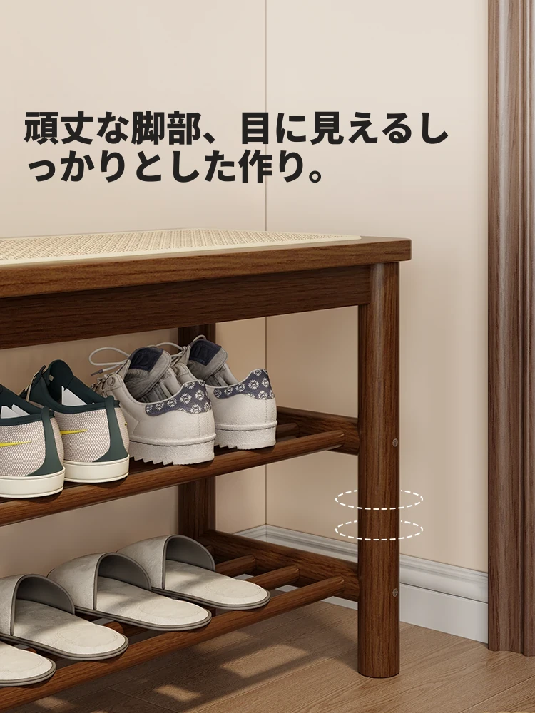 玄関用スリッパ収納ベンチ - コンパクトな天然木製、クッション付きで座り心地抜群!靴を収納しつつ、シンプルでスタイリッシュなデザインで、入居時の利便性をアップ!