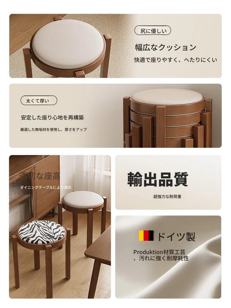 2025新作!スタイリッシュでモダンな実木製スタッキングスツール - 食卓や化粧台に最適!柔らかなクッション付きで快適さ抜群。省スペースで収納も簡単!おしゃれなインテリアにぴったりな一品です。