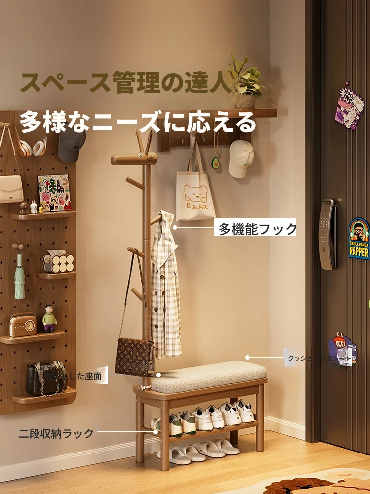 玄関で使える実木製スリムシューズベンチ - 座れる&収納可能!おしゃれな小鹿デザインで、狭いスペースにもぴったりなクリエイティブな長椅子。あなたの入居スペースを美しく演出します!