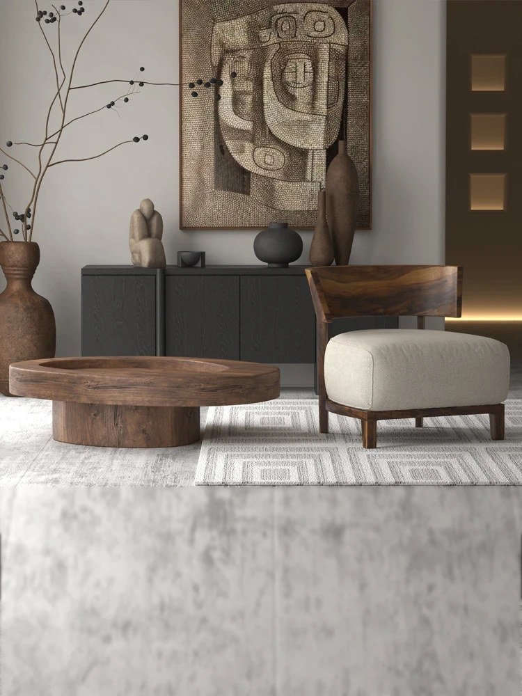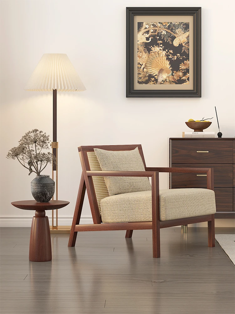 Wabi-Sabi Style Solid Wood Single Sofa - Designer Lounge Chair for Living Room, Cozy Retreat, Tea House, and Hotel Relaxation Area