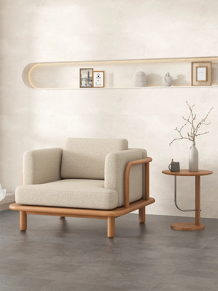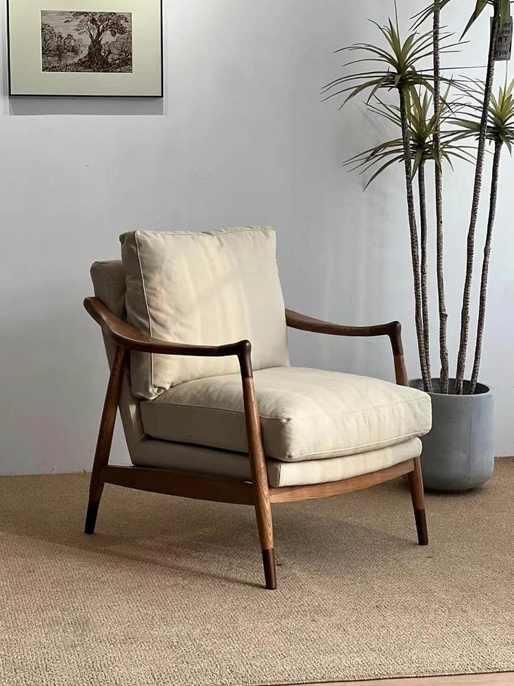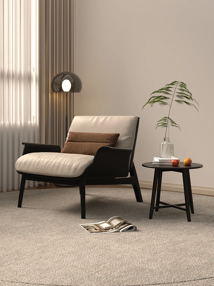 Nordic Solid Wood Single Sofa - Modern Wabi-Sabi Style Lazy Lounge Chair for Hotels, B&Bs, and Reception Areas - Perfect for Relaxation and Casual Meetings
