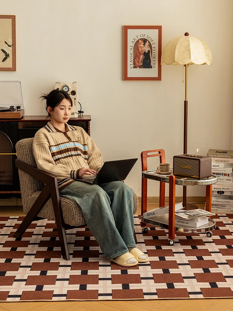 French Vintage Solid Wood Leisure Chair - Single Sofa for Living Room & Balcony, Wabi-Sabi Design Ideal for Boutique Hotels and Guesthouses, Perfect for Relaxing Conversations