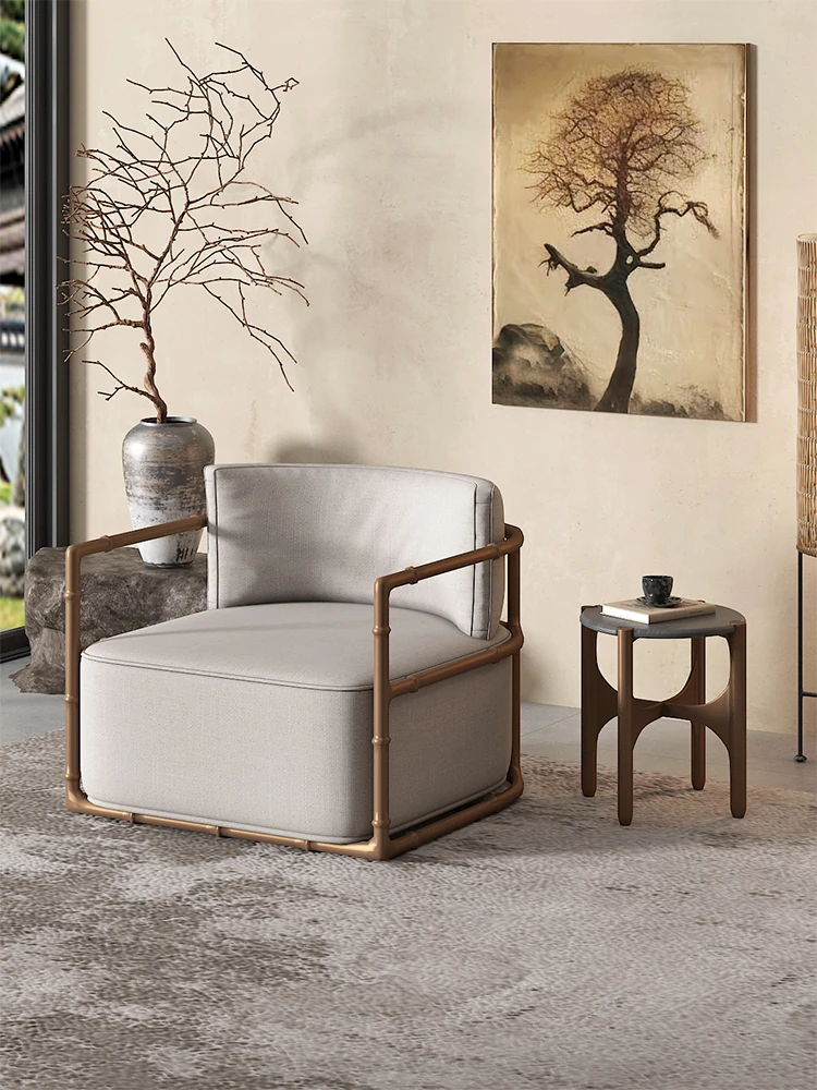 Modern Chinese Style Designer Armchair - Stainless Steel Leisure Chair for Hotels, Clubs, and Home Living Rooms - Perfect for Relaxation and Conversations