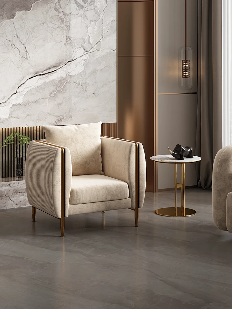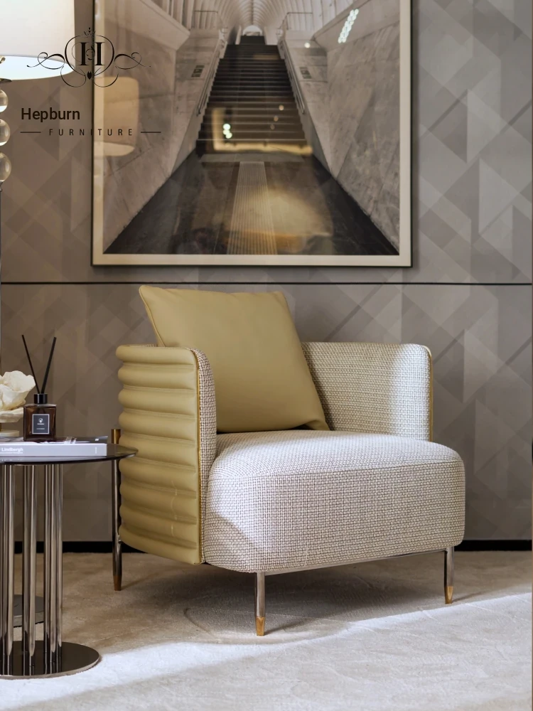 Italian Minimalist Single Sofa Chair - Stylish and Comfortable Lounge Chair for Living Room, Balcony, Hotel, and Club Meetings - Durable Stainless Steel Design