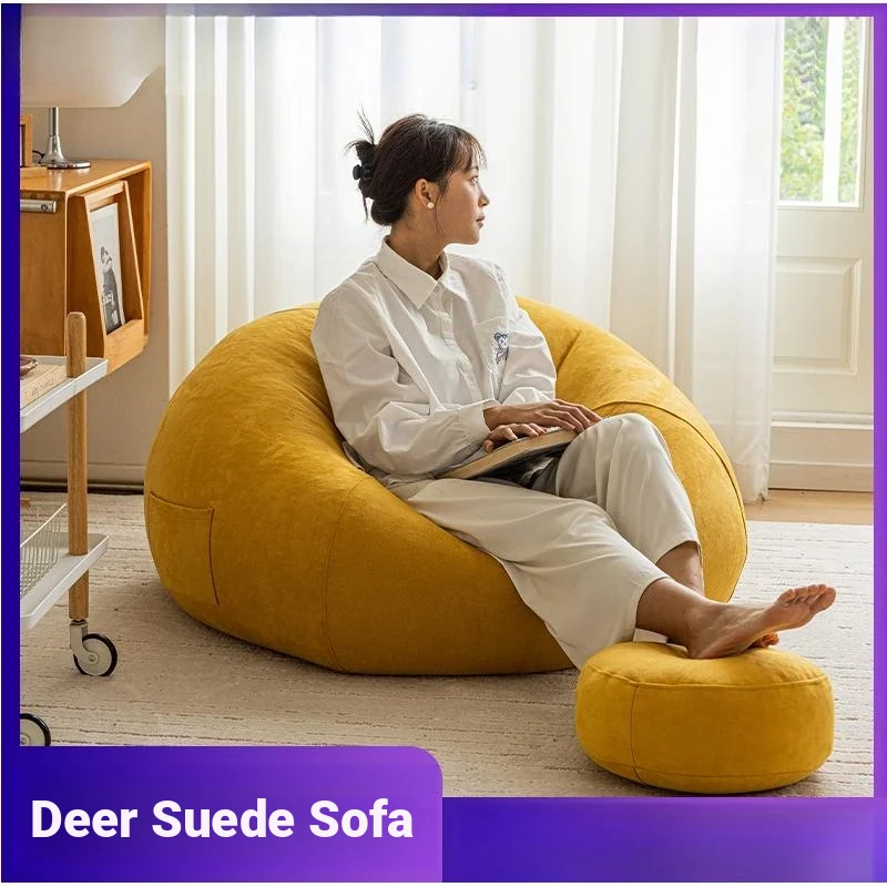 Suede Lazy Sofa - Versatile Single Fabric Couch for Living Room, Bedroom, and Balcony, Perfect for Relaxing and Lounging