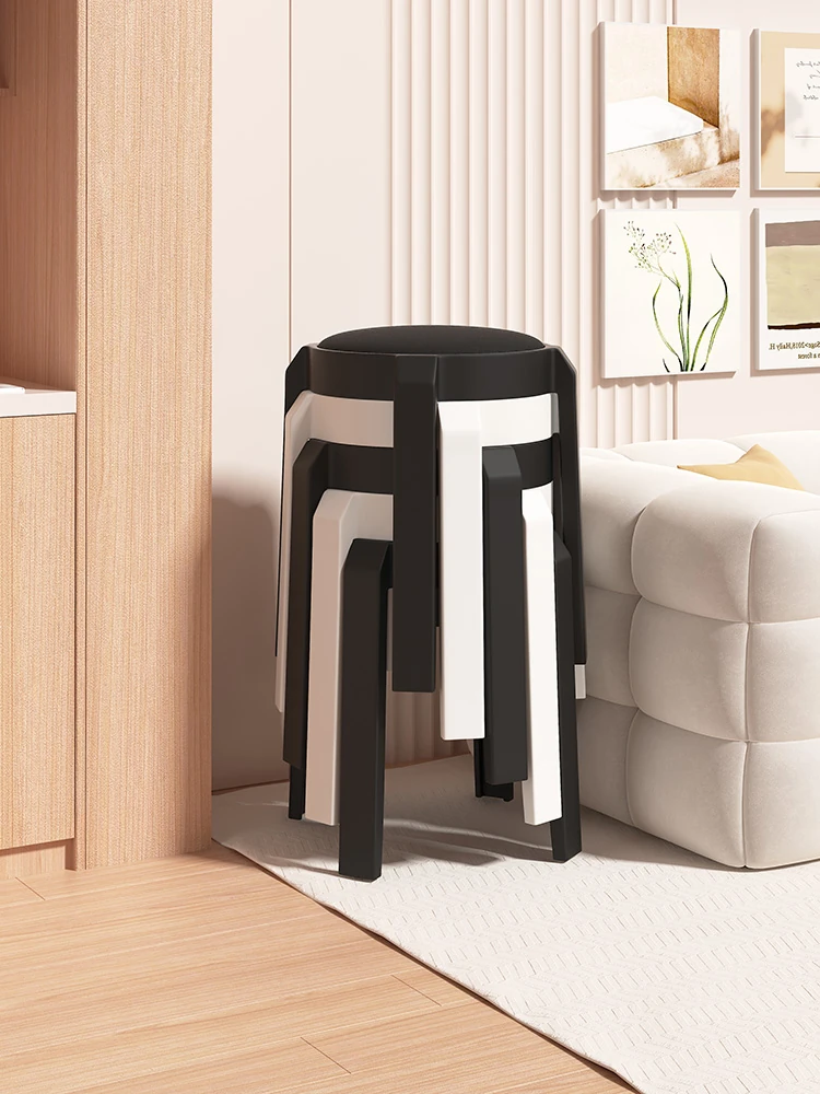 Thickened Plastic Stool for Home Use - Stackable Soft Cushion Modern Minimalist High Dining Table Square Bench, Comfortable Chair