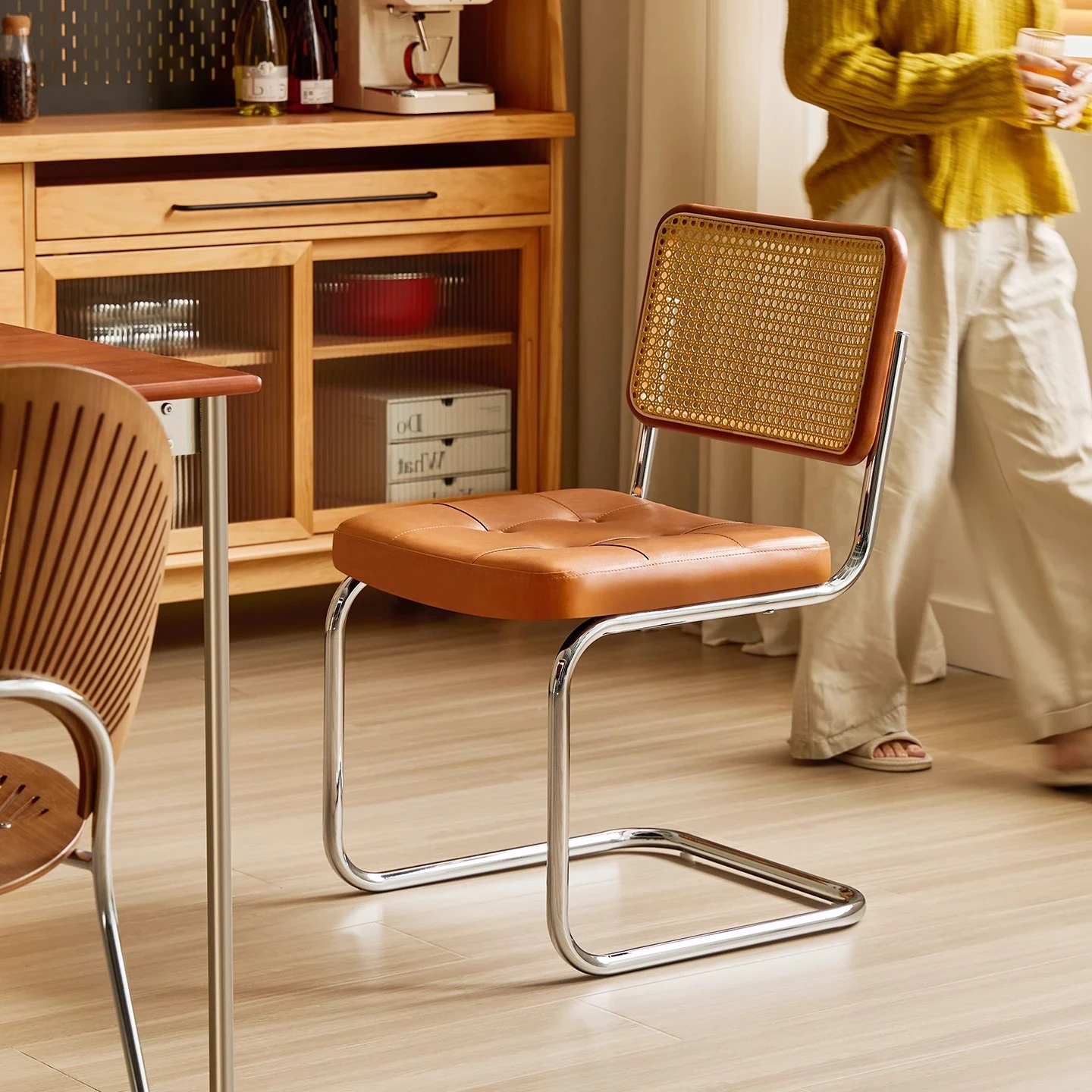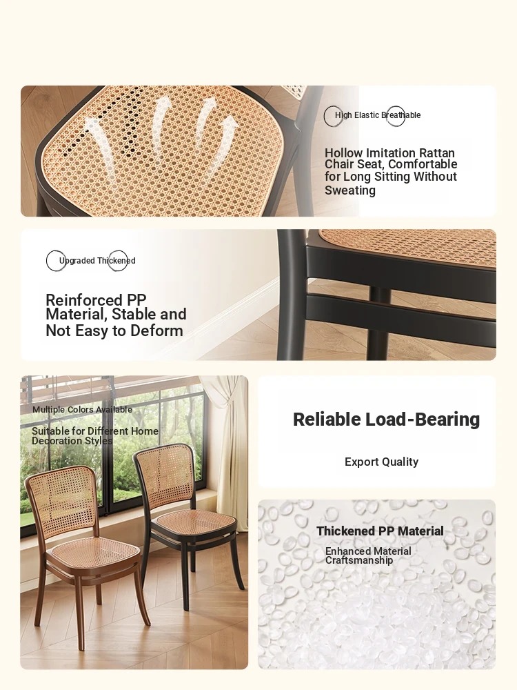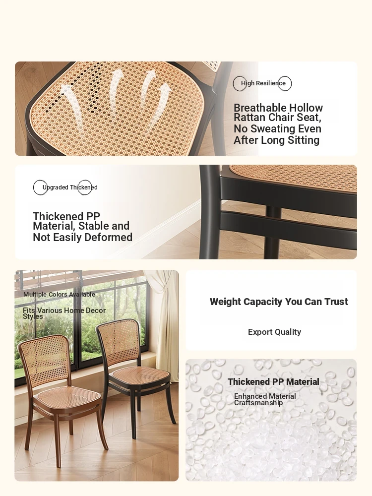 Elegant Rattan Dining Chair - Vintage Style, Stackable Plastic Backrest Chair for Home Use, Ideal for Dining Rooms and Tea Tables, Exudes Luxury and Sophistication