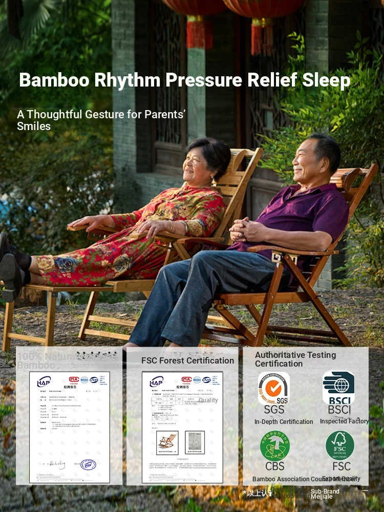 Foldable Rocking Chair - Versatile Recliner for Napping and Relaxation, Ideal for Seniors. Comfortable Bamboo Lounge Chair for Home and Balcony Use, Perfect for Leisure and Afternoon Rest.