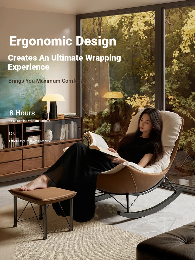 2025 New Single Reclining Chair - Stylish Rocking Chair for Balcony, Perfect for Home Relaxation, Napping, and Leisure Time, Ideal for Adults