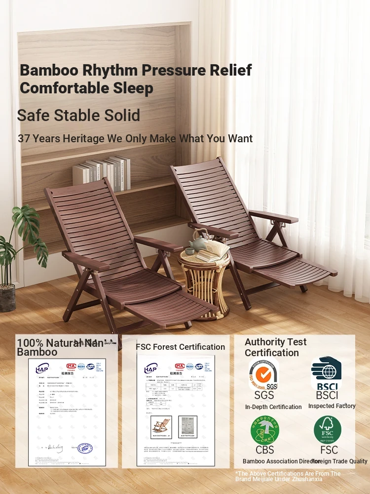 Comfortable Folding Recliner Chair for Home and Balcony - Ideal for Napping and Relaxation, Perfect for Seniors and Lazy Loungers, Made of Bamboo for Long-lasting Use