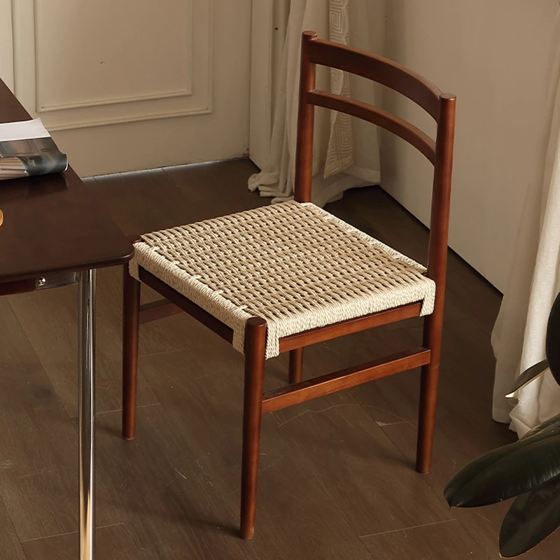 French Style Dining Chair - Comfortable Woven Chair for Home, Vintage Wabi-Sabi Design, Retro Tea Chair for Restaurant, Solid Black Walnut Dining Table Set