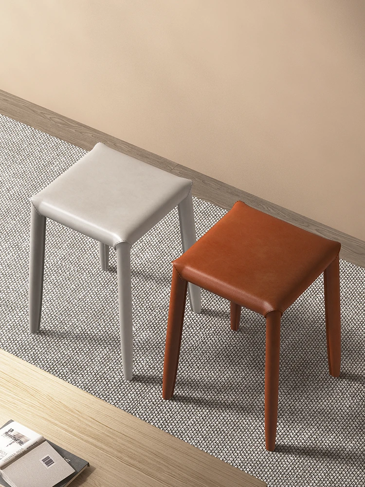 Designer Saddle Leather Dining Chair - Luxurious and Chic Stackable Stool for Home Dining Room - Modern Square Bench with High-End Feel