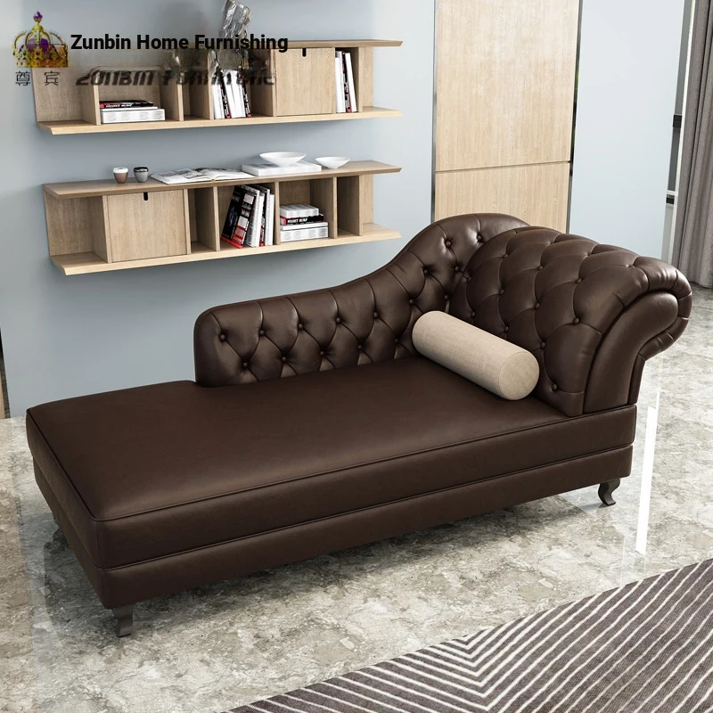 European Style Genuine Leather Chaise Lounge - Stylish Single Recliner Sofa Bed for Small Spaces, Perfect for Bedrooms and Lazy Days, American Style Daybed