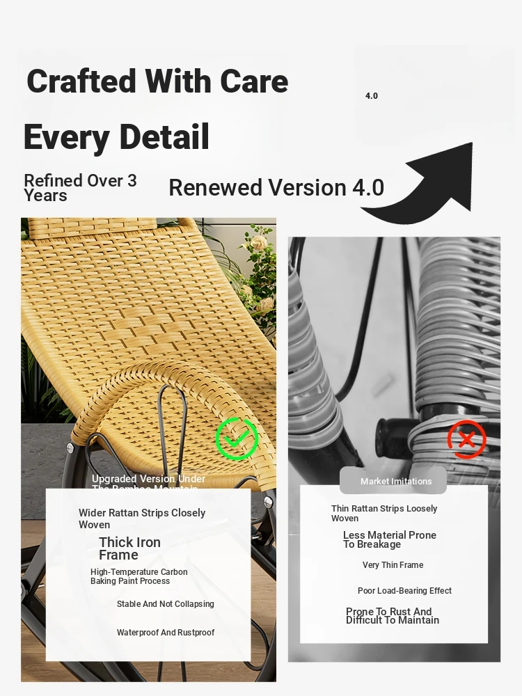 Comfortable Rocking Lounge Chair for Adults - Dual Purpose Recliner for Relaxation and Sleep, Ideal for Balcony and Home Use, Perfect for Elderly with Woven Design