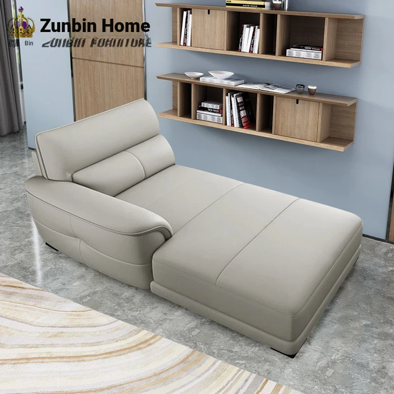 Nordic Leather Chaise Lounge Chair - Stylish and Comfortable Recliner Sofa for Living Room and Bedroom, Genuine Leather, Perfect for Small Spaces and Relaxation