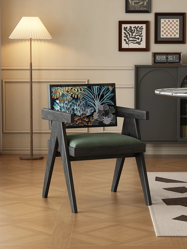 Nemo 2025 New Designer Vintage Solid Wood Dining Chair - French Retro Armchair for Elegant Leisure and Tea Time, Perfect for Chic Interiors