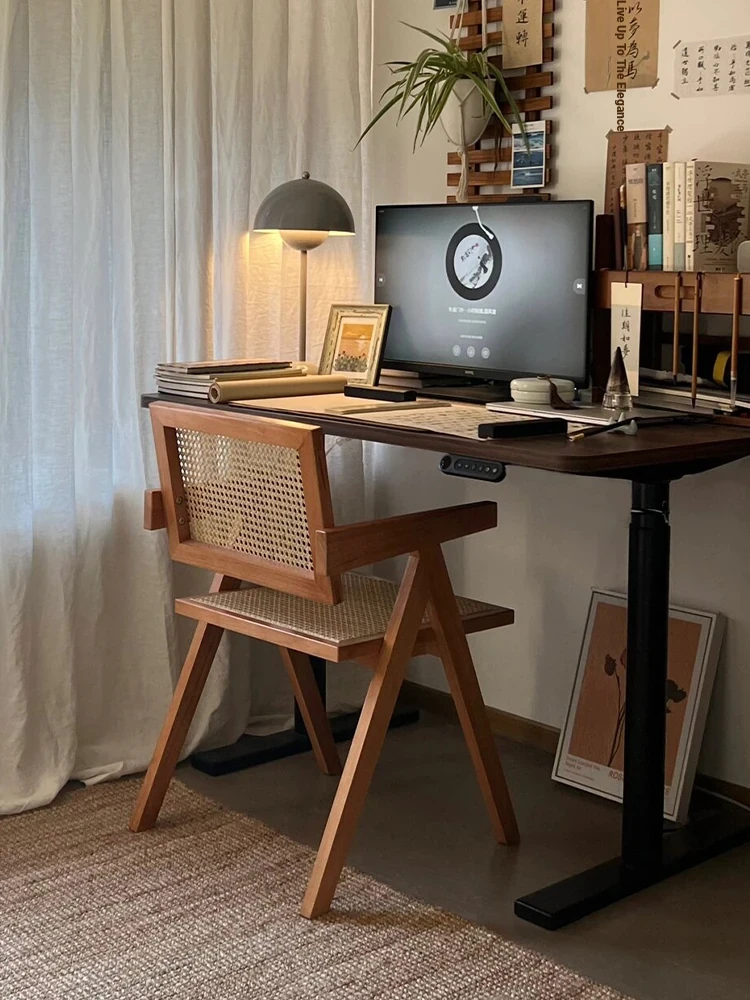 2025 New Solid Wood Dining Chair - Vintage Wabi-Sabi Style, Elegant Backrest, Comfortable Rattan Lounge Chair for Home Living Room, Perfect for Relaxation and Aesthetic Appeal