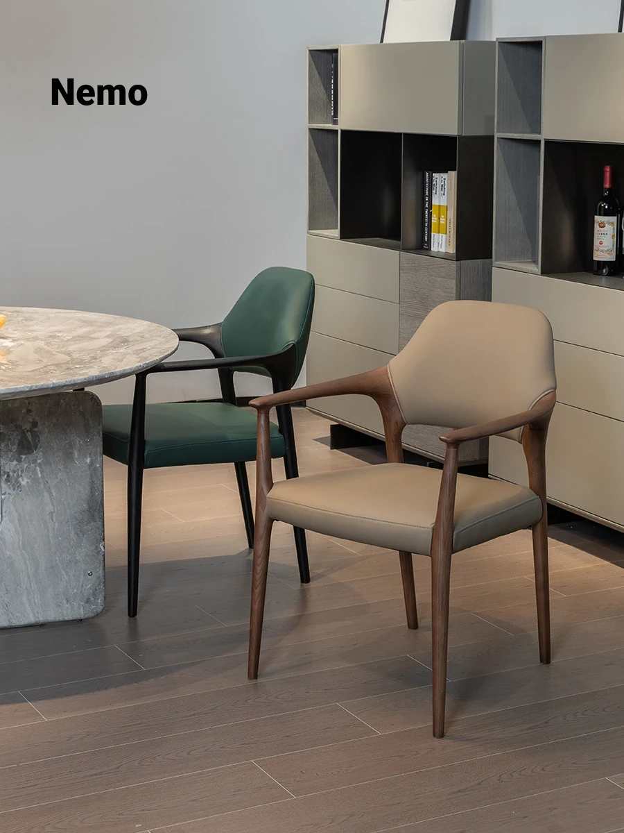 Nemo Vintage French Black Walnut Leather Dining Chair - Comfortable Armchair for Tea, Retro Style, Perfect for Reading and Relaxing in Your Home