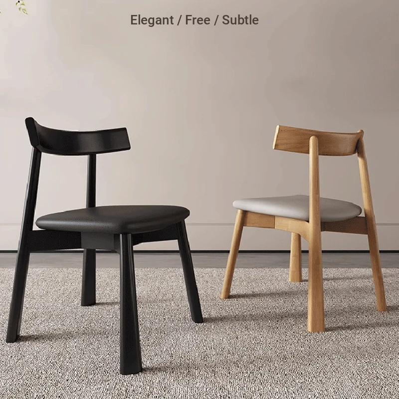 Nordic Solid Wood Dining Chair - Modern Minimalist Leather Seat for Home & Restaurant, Stylish Backrest Stool for Nordic Hotels and Dining Spaces