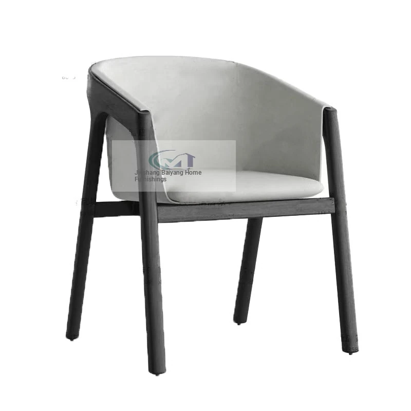 Nimo 2025 New White Ash Wood Premium Leather Book Chair - Elegant Tea Chair with Song Aesthetics, Stylish Swivel Dining Chair for Sophisticated Living Spaces