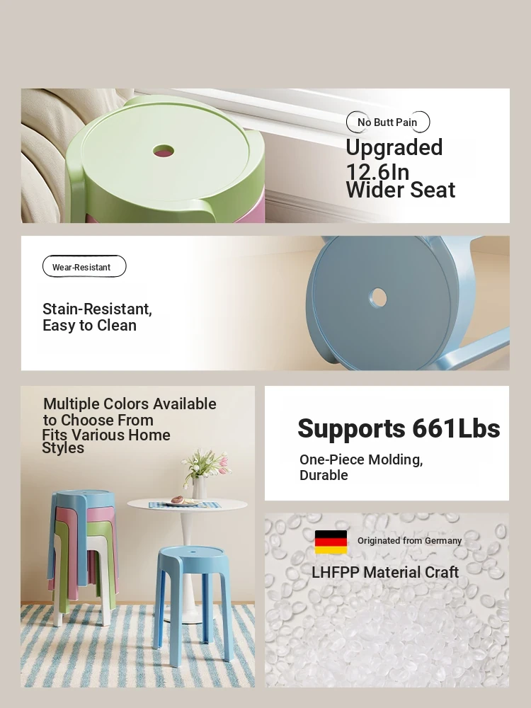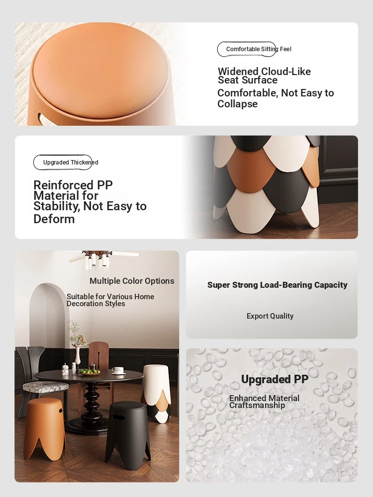 Stylish and Durable Thickened Plastic Stool for New Home - Space-Saving, Stackable, and Elegant Round Chair for Everyday Use