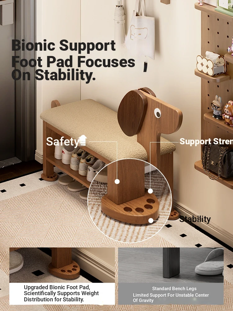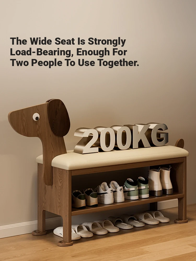 Narrow Wooden Shoe Bench for Entryway - Stylish and Functional, Perfect for Sitting and Storage, Creative Deer Design, Ideal for Small Spaces
