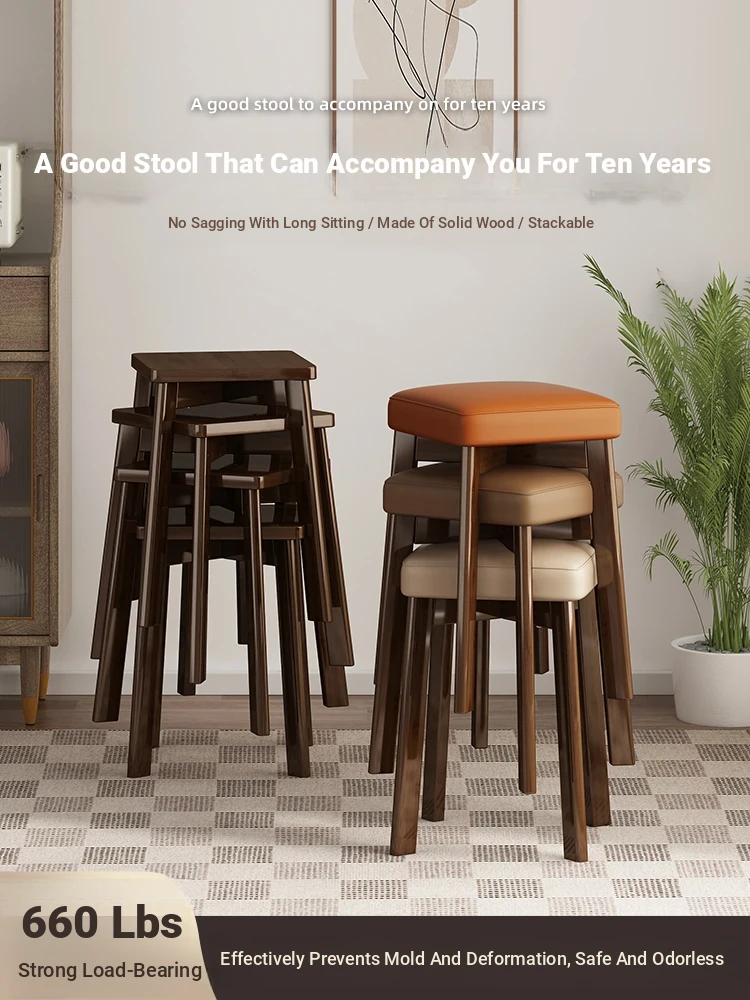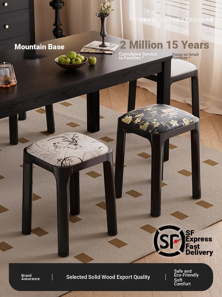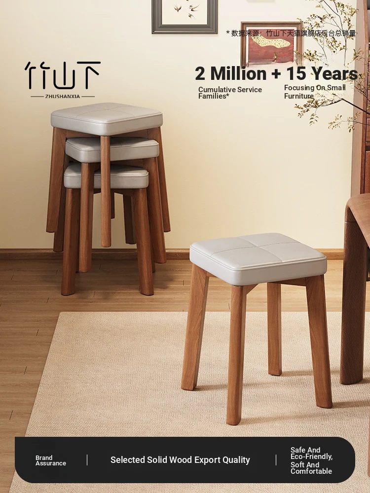Modern Solid Wood Stool for Home Use - Soft-Padded Square Dining Chair, Stackable and Minimalist Design, Perfect for Living Room, Versatile Low Bench and Small Stool.