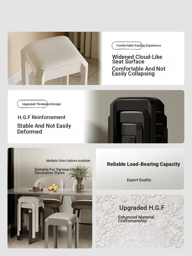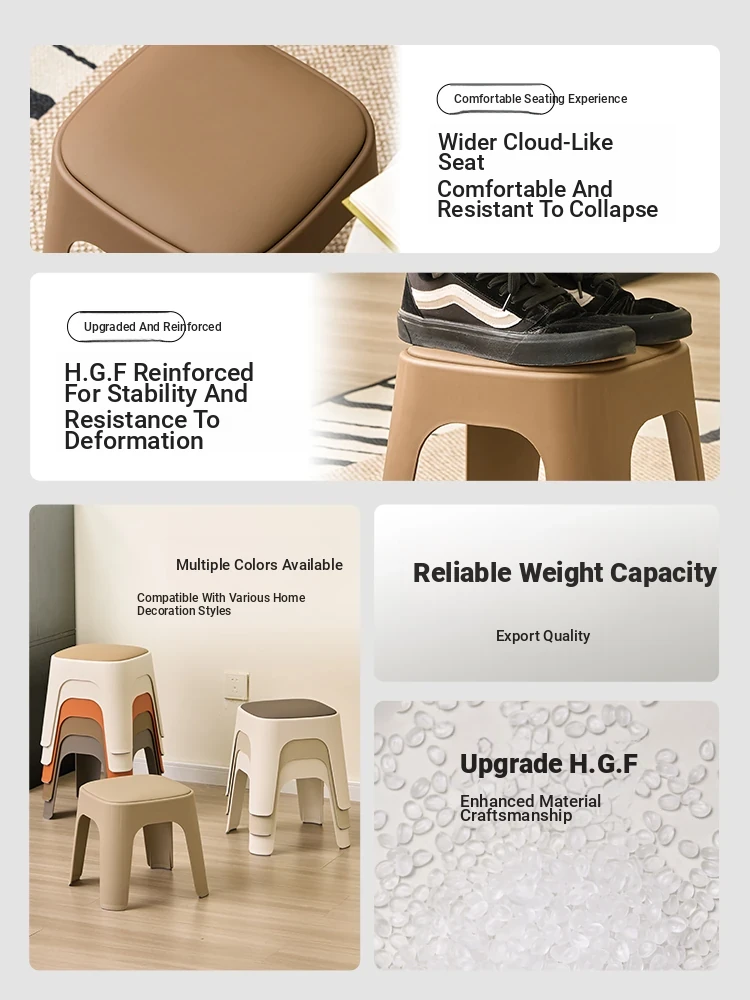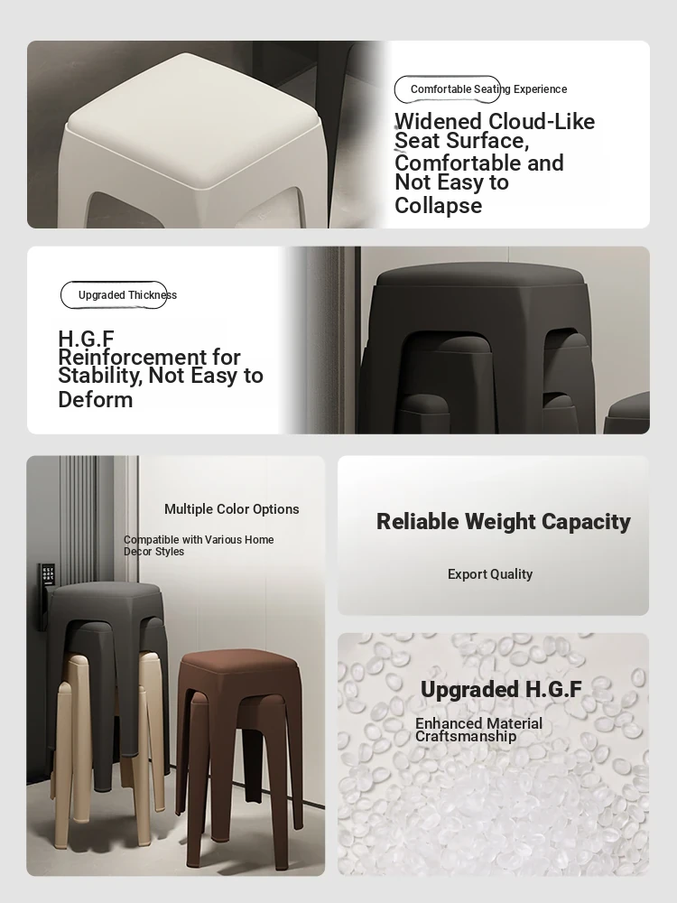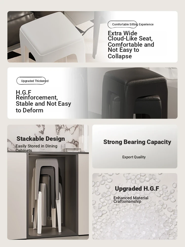 Thickened Plastic Stacking Stool - Modern Minimalist Soft-Padded Square Bench for Home, Perfect for Living Room, Dining Table, and Restaurant Use