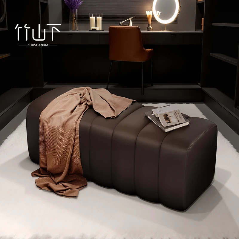 Modern Solid Wood Upholstered Stool - Thick Cushioned Stackable Ottoman for Home Use, Perfect for Living Room or Dining Table, Square and Round Options Available, Stylish and Functional Design