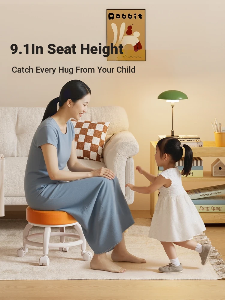 Sturdy Round Stool with Swivel Wheels - Trendy Portable Small Rolling Seat for Home Use, Perfect for Easy Mobility and Versatile Seating Solutions!