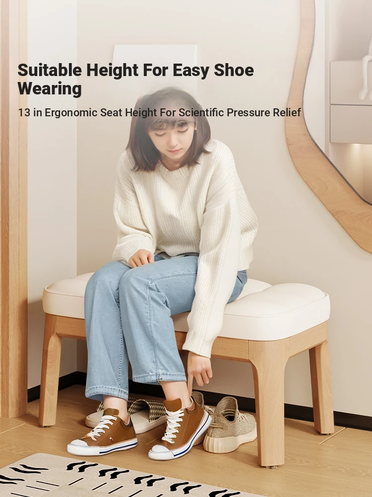 Narrow Solid Wood Entryway Bench with Soft Cushion - Elegant and Luxurious Shoe Changing Stool for Home, Perfect for Small Spaces at Entrance