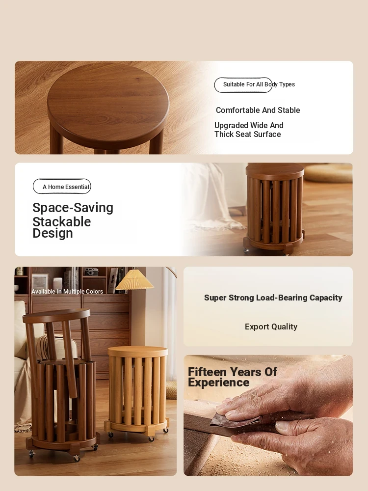 Stylish Solid Wood Stacking Stool – Space-Saving and Elegant Design for Home Use, Perfect as a Guest Seat or Extra Bench. Ideal for Modern Living Spaces!