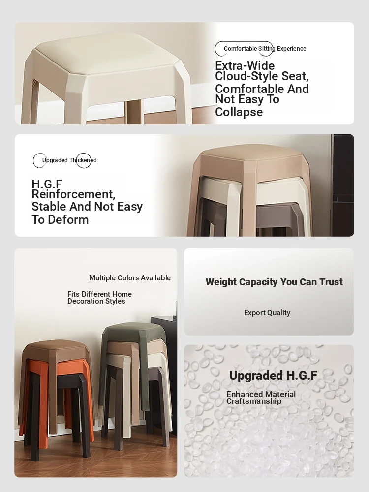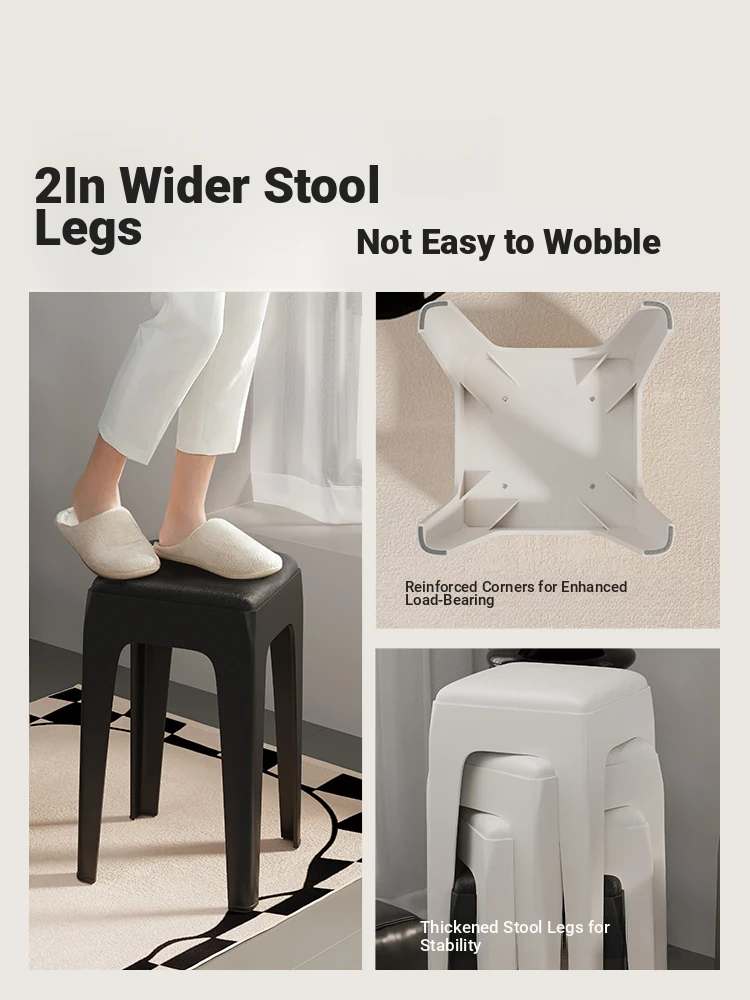 Durable Stackable Plastic Stool for Home Use - Stylish and Comfortable Soft Padded Seat, Perfect for Guests and Living Room Décor, Adding a Touch of Luxury to Your Space