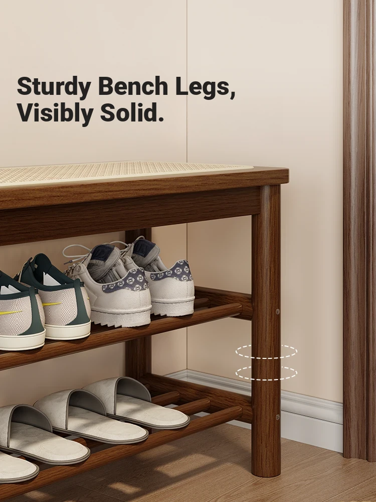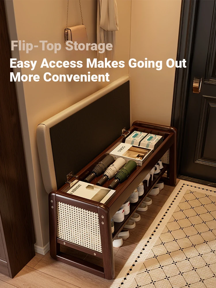 Vintage Solid Wood Shoe Bench - Home Entryway Seating with Woven Rattan Design, Perfect for Shoe Storage and Entryway Organization, Stylish and Functional Doorway Stool