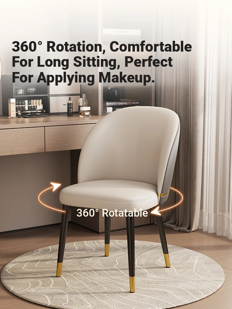Stylish Rotating Makeup Stool for Bedroom - Nordic Luxury Design with High Backrest, Perfect for Vanity Tables and Home Use