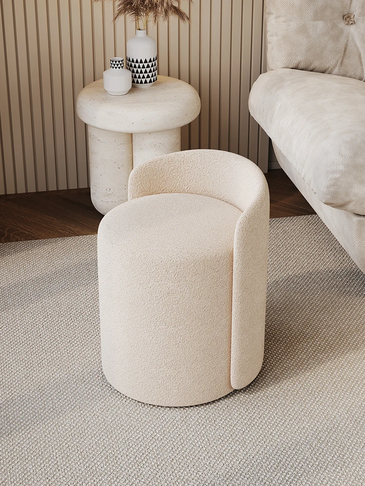 Luxury Modern Makeup Chair for Home – Soft Lamb Fleece Dressing Table Stool with Backrest, Perfect for Girls' Bedrooms and Nail Art Sessions