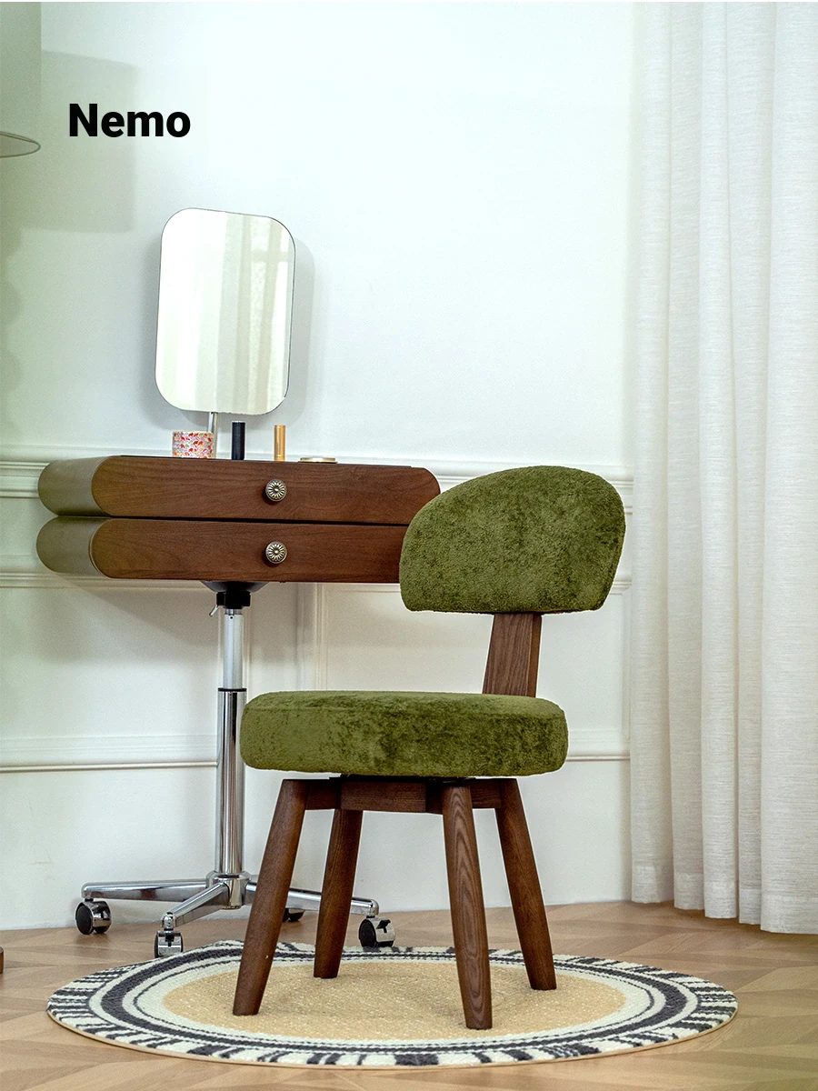 Vintage-Style Rotating Makeup Chair - Solid Wood Dressing Stool for Women’s Bedroom, Elegant Backrest Design, Chic Retro Accent for Your Vanity Table