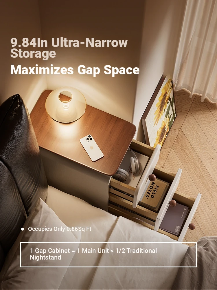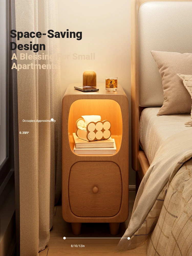Sleek and Stylish Narrow Solid Wood Nightstand for Bedroom - 2025 Trendy Compact Luxury Storage Cabinet, No Installation Needed! Perfect for Organizing Your Space.