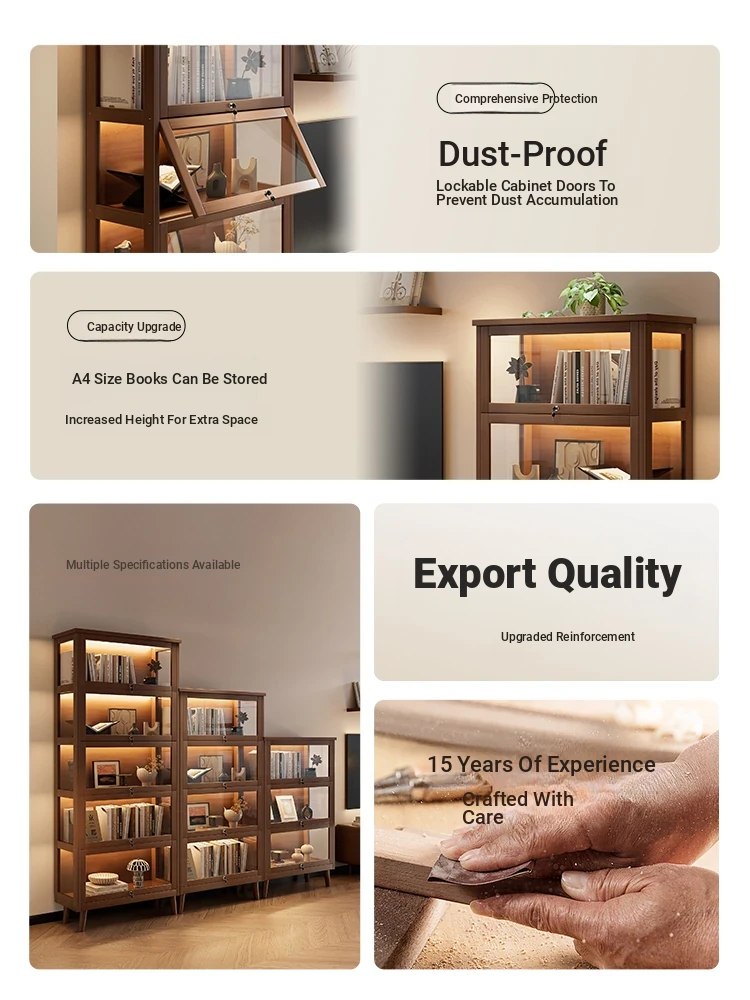 Solid Wood Display Cabinet with Lockable Glass Doors - Perfect for Showcasing Figurines, Models, and Toys - Ideal Storage Solution for Collectibles and Decor Items